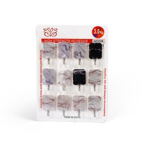 Elegant and functional 12-piece adhesive hook set featuring assorted marble patterns. Each hook can hold up to 3KG.